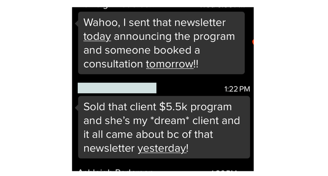 I was FLOORED. All this time, I thought my revenue would come from a group course or program. It had never occurred to me that people would want me to coach them one-on-one.